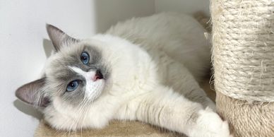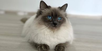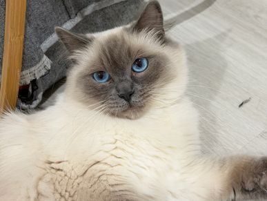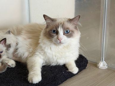 Charlie is our blue colourpoint Ragdoll, she loves pats and will always show you her appreciation for them with her continuous purrs.